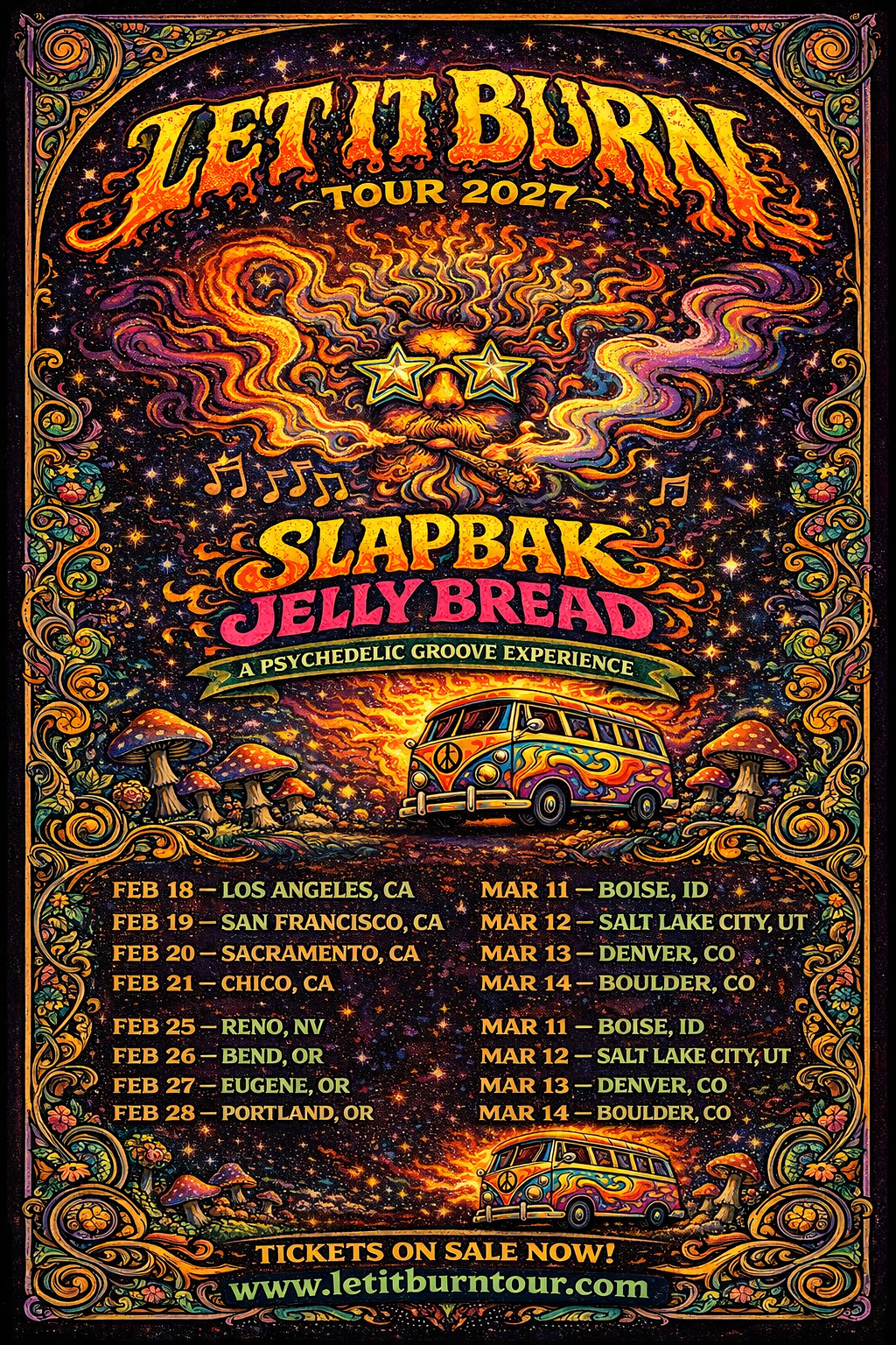 The Let It Burn Tour (2027) is a high-octane live experience pairing Slapbak’s "Funk-Core" power with Jelly Bread’s "Desert-Gospel-Funk." This co-headlining run delivers a relentless wall of sound designed to ignite dance floors. From urban edge to swampy riffs and four-part harmonies, the tour offers a turnkey, professional production for major markets like LA, Reno, and Seattle. This scalable system guarantees a "sweat-soaked" celebration where fans leave everything on the floor. Feel it. Move to it. Let it burn.